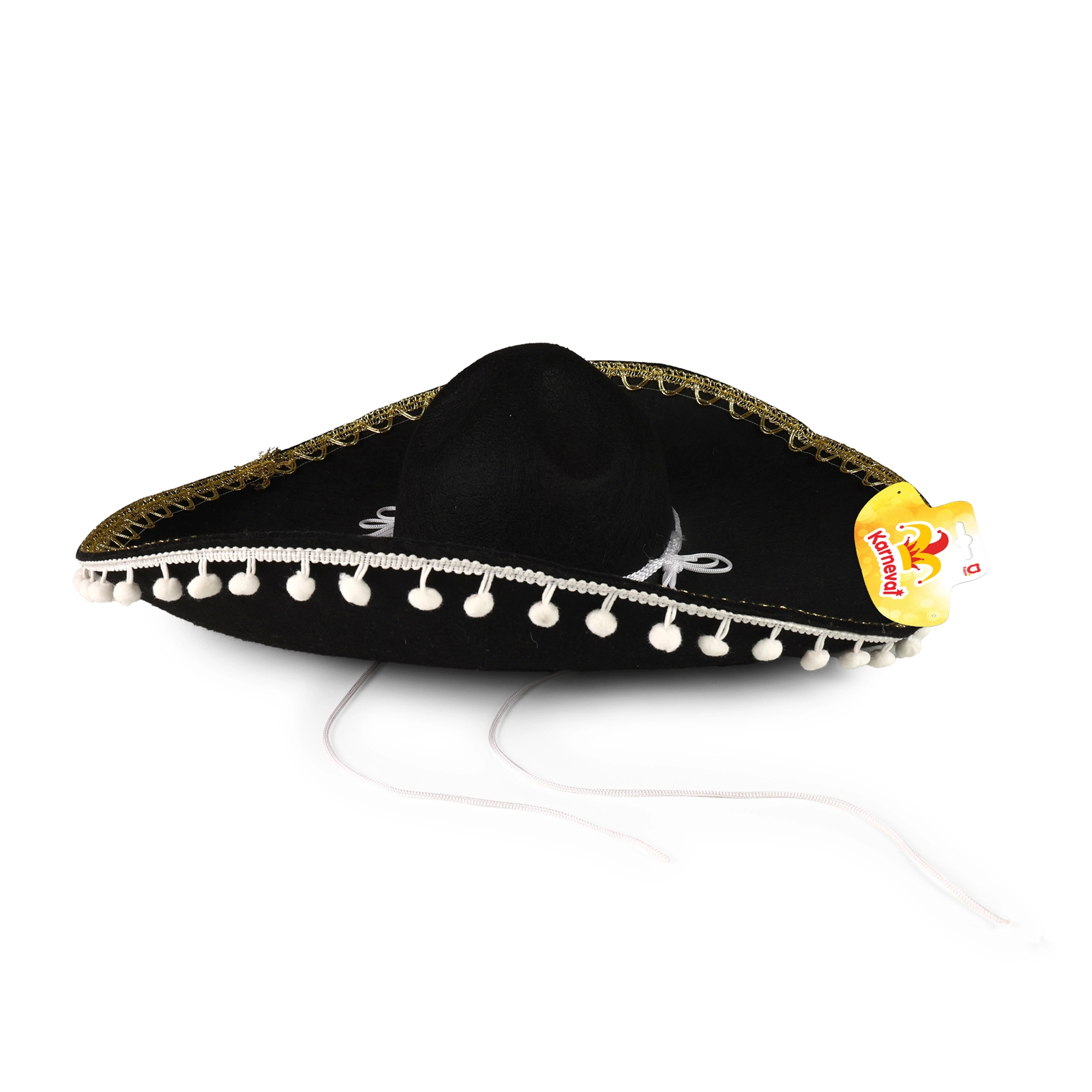Este sombrero negro es ideal para cualquiera que quiera destacar en carnavales o fiestas temáticas. Con pompones blancos y cordón, ofrece no solo estilo, sino también comodidad al llevarlo. Es un excelente complemento para: