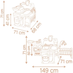 Este centro de juego único ofrece tres zonas: cocina, baño y dormitorio, que proporcionan a tu hijo todo lo necesario para un juego realista.