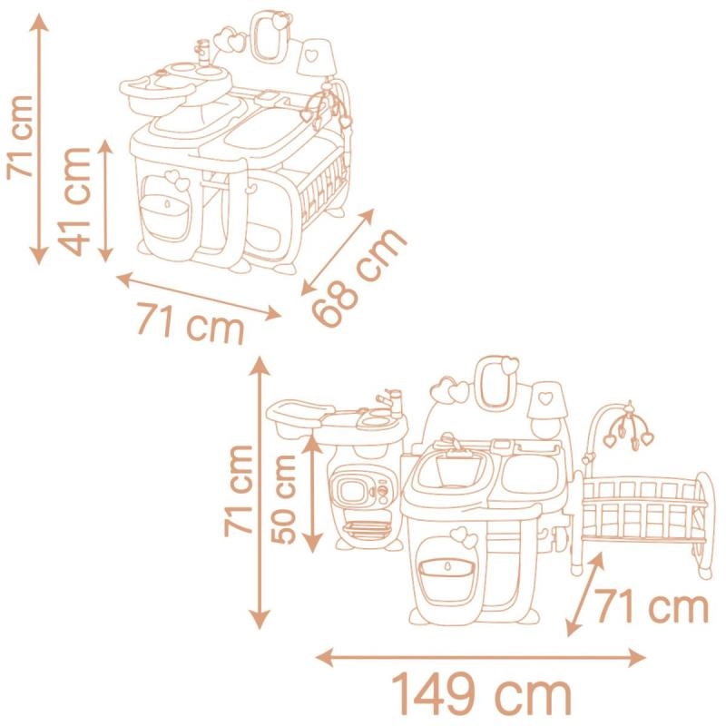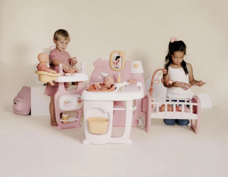 El centro de juego para muñecas Baby Nurse es perfecto para los más pequeños que adoran cuidar a sus muñecas. Está equipado con tres zonas de juego y es plegable para facilitar el transporte, lo que permite un juego infinito en cualquier lugar.