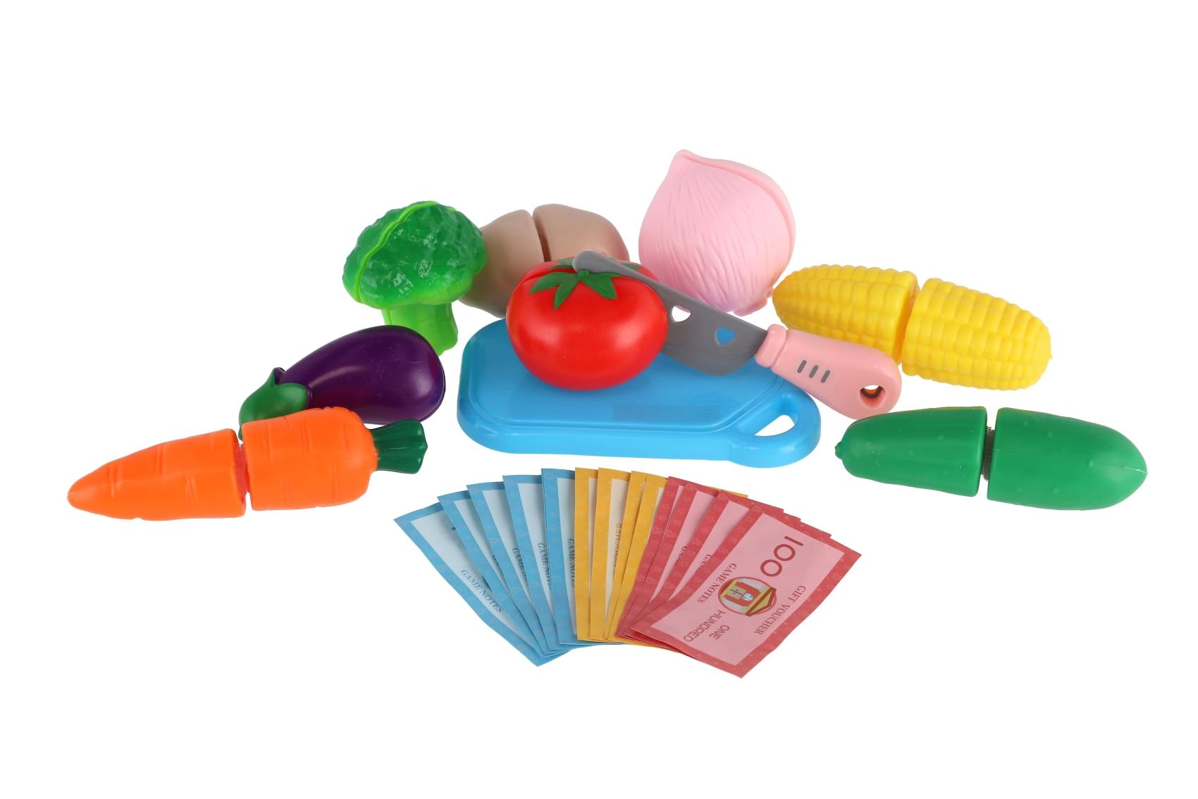 Nuestro set de verduras para cortar ofrece un juego realista para niños que disfrutan imitar a los adultos. Todas las verduras están unidas con velcro, lo que permite un “corte” seguro con el cuchillo de plástico. El set incluye varias piezas de verduras y una tabla, para que los niños puedan desarrollar su creatividad y jugar a ser chefs profesionales.