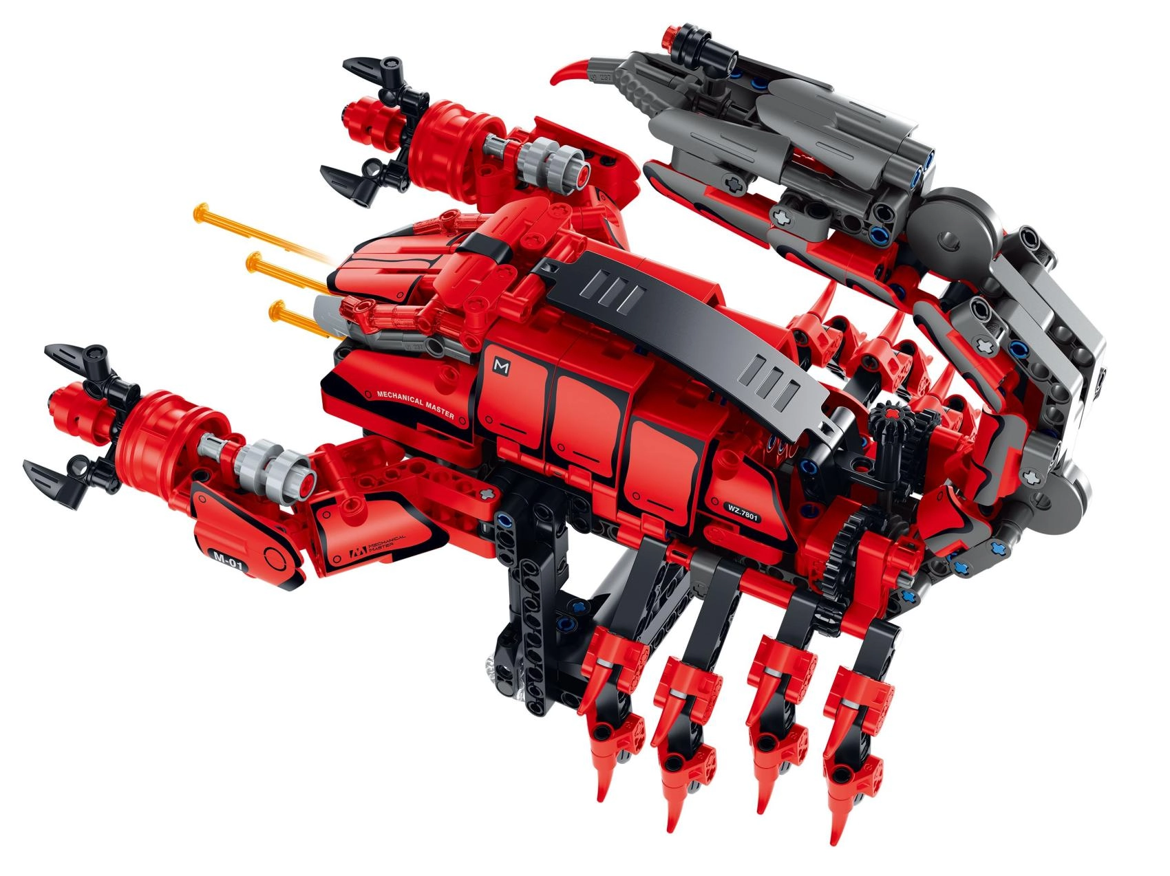 Monta un escorpión rojo que en un instante se transforma en una arma mecánica de muñeca. Gracias al ajuste regulable se lleva con comodidad, el mecanismo de control mueve las garras, pinzas y la cola, incluye elementos lanzadores y articulaciones realistas. Ideal para la educación STEM, el desarrollo de la lógica y de las habilidades de construcción.