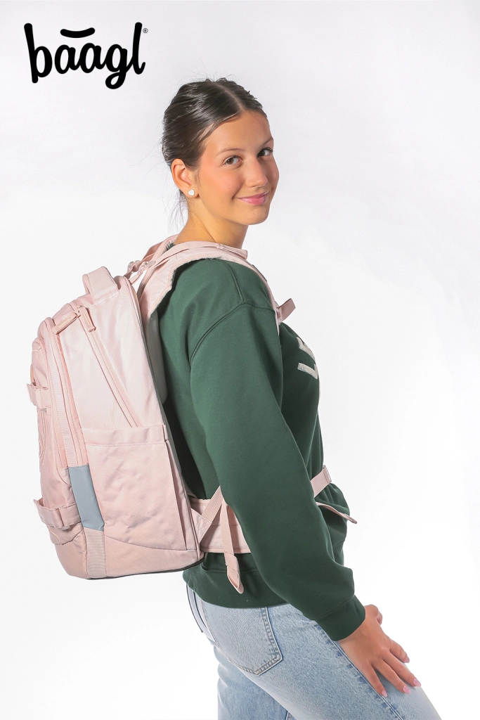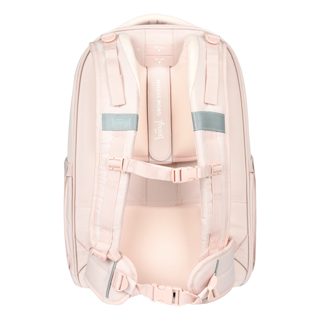 Elegante set escolar Baagl Skate Max Creamy, que incluye mochila, estuche y saco, es la opción ideal para cualquier alumno. Garantiza comodidad y seguridad gracias al sistema trasero ajustable y a los elementos reflectantes.