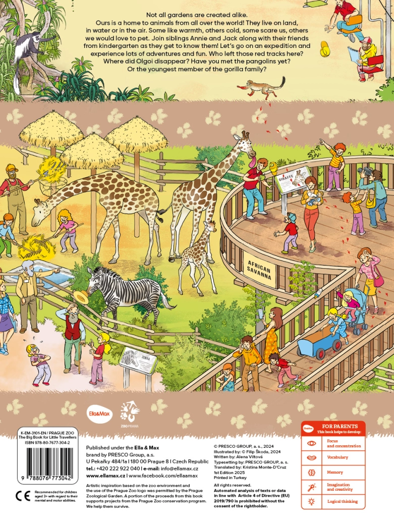 Con este increíble libro visitarás uno de los zoológicos más hermosos del mundo, el Zoológico de Praga. No solo conocerás una gran diversidad de especies animales, sino que también descubrirás historias cautivadoras que te llevarán al misterioso mundo de sus habitantes. Únete a una expedición aventurera y sigue las huellas rojas que te conducirán hasta los asombrosos pangolines o hasta la miembro más joven de la familia de gorilas.