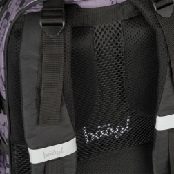 En la parte frontal hay dos correas, ideales para sujetar un monopatín, una chaqueta o un casco, algo que apreciarán especialmente los estudiantes activos. La mochila está fabricada con material resistente y impermeable y cuenta con elementos reflectantes para mayor seguridad con poca visibilidad. Como extra, incluye un colgante metálico con forma de monopatín.
