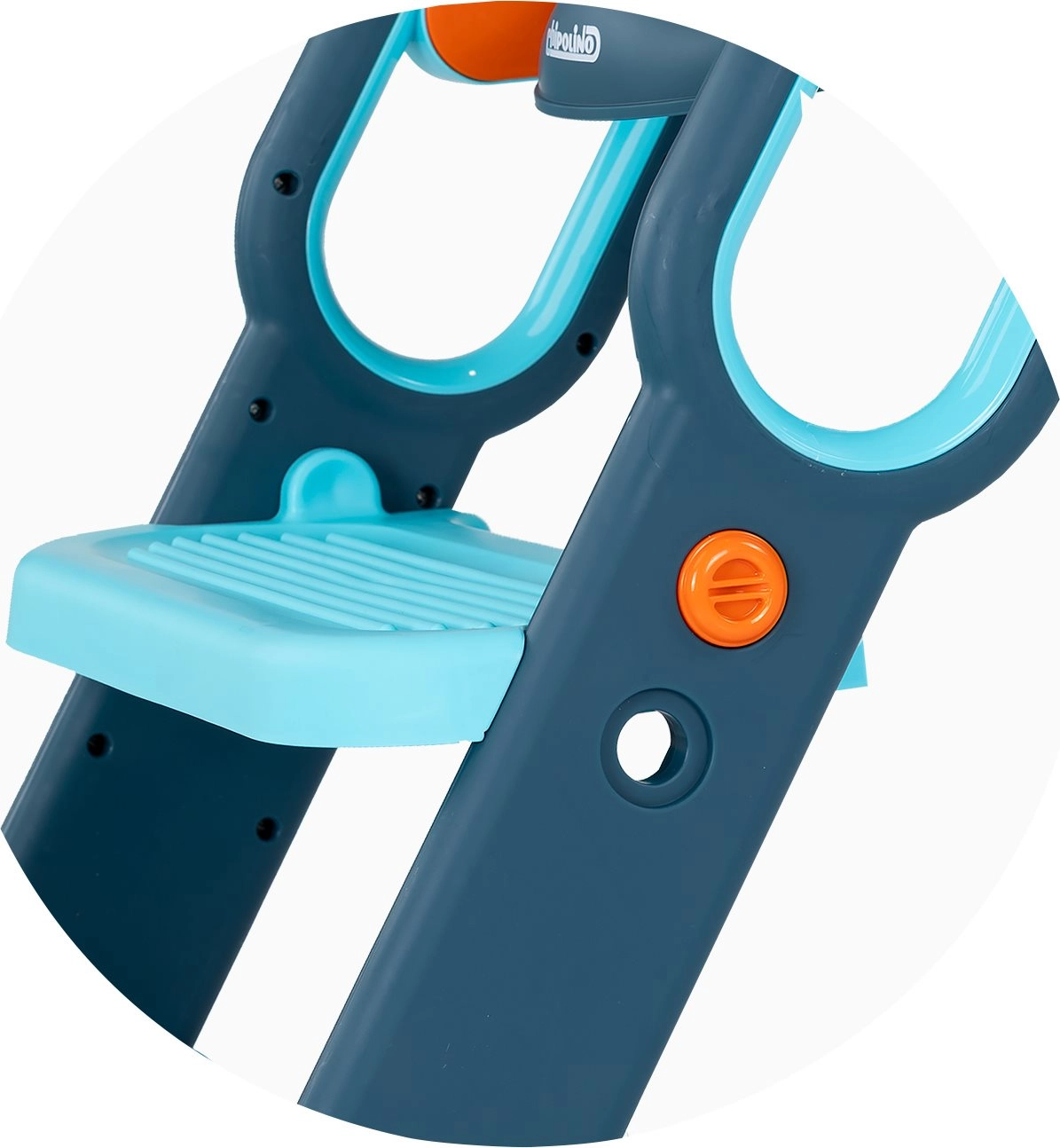 Chipolino Flippy ofrece un diseño innovador que es apto para todo tipo de inodoros. Gracias a su estabilidad, seguridad y facilidad de uso es una opción ideal para los padres. Está equipado con un reposapiés ajustable en altura, que garantiza comodidad para las piernas del niño. El acolchado suave y los peldaños anchos antideslizantes contribuyen al máximo confort de los niños.