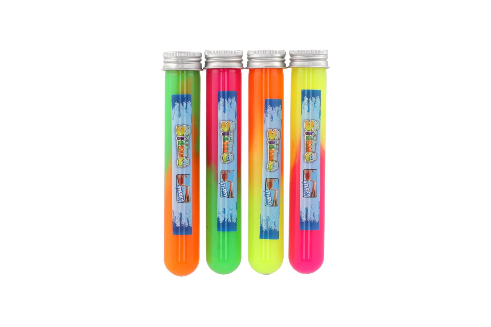 Una baba colorida y pegajosa en un tubo transparente, ideal para niños de todas las edades. Este material lúdico encanta por sus propiedades y desarrolla la creatividad.
