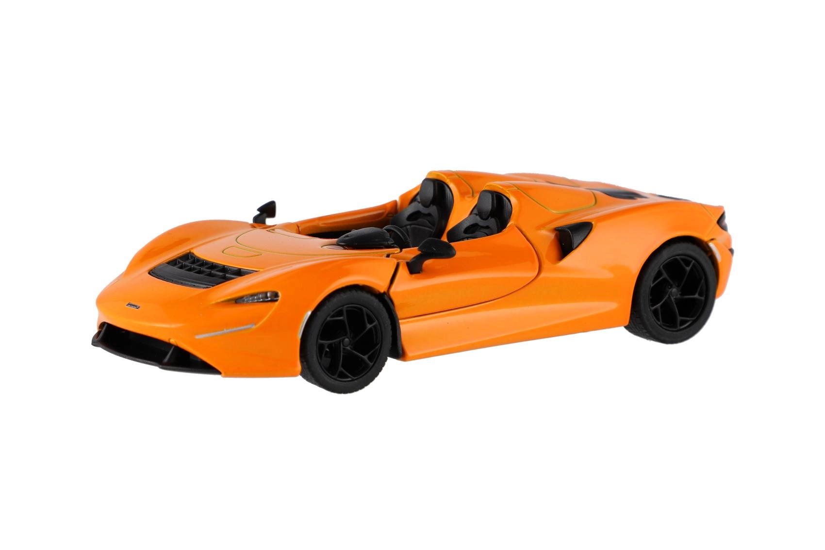 El McLaren Elva de Kinsmart es un modelo metálico detallado con función de retroceso, lo que permite un juego fácil y divertido para niños y adultos. Este modelo a escala 1:32 es ideal tanto para coleccionistas como para quienes desean disfrutar del diseño innovador y el estilo de lujo de los vehículos McLaren.