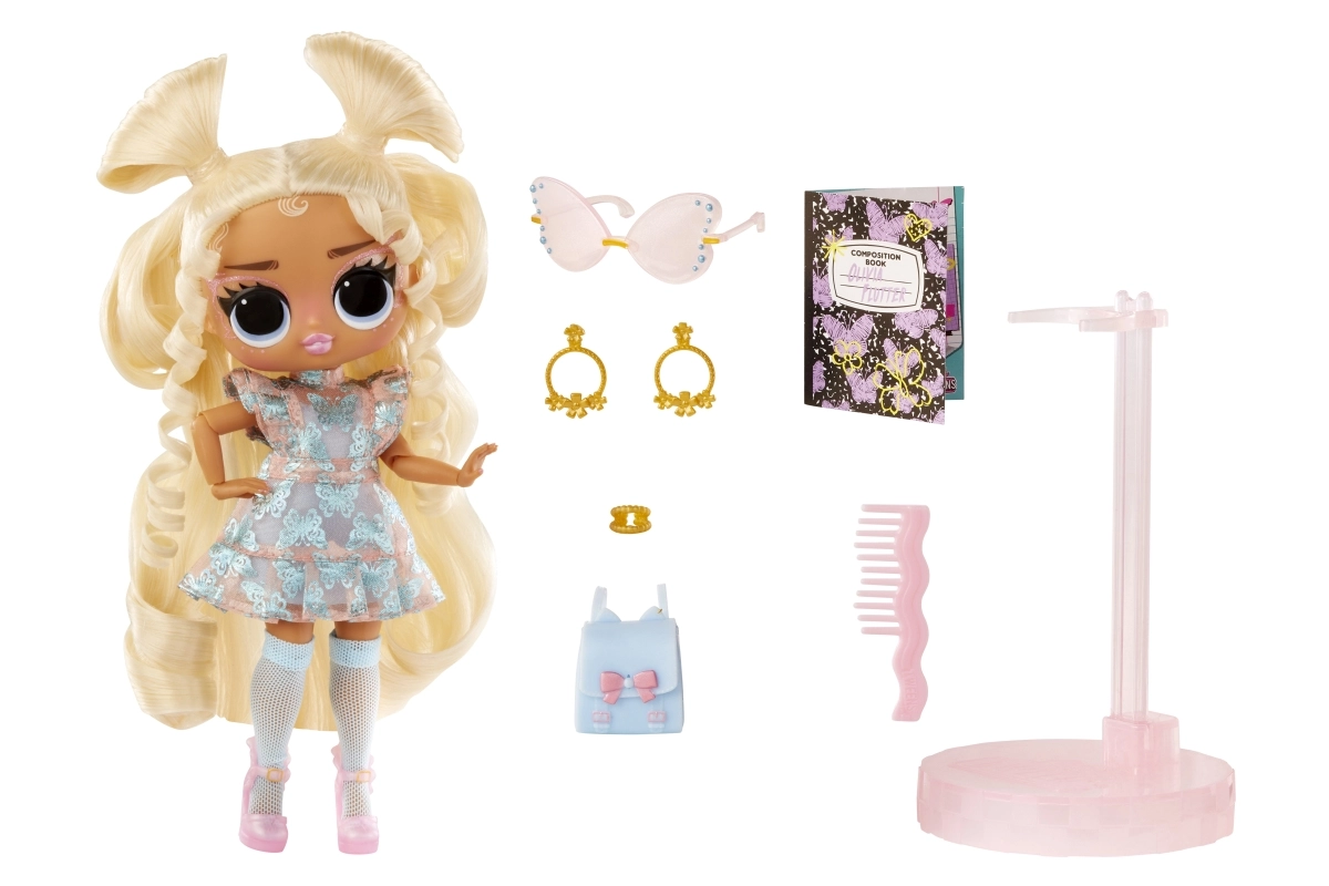 Descubre la magia de la moda con la muñeca L.O.L. Surprise! Tweens Olivia Flutter, que destaca por su vestido pastel vaporoso, calcetas altas y plataformas. Gracias a sus articulaciones es fácilmente posicionable y está lista para sesiones de fotos y lucir outfits. En el paquete también encontrarás un peine, un diario y una base/soporte, para disfrutar de peinados divertidos y exposición de colección.