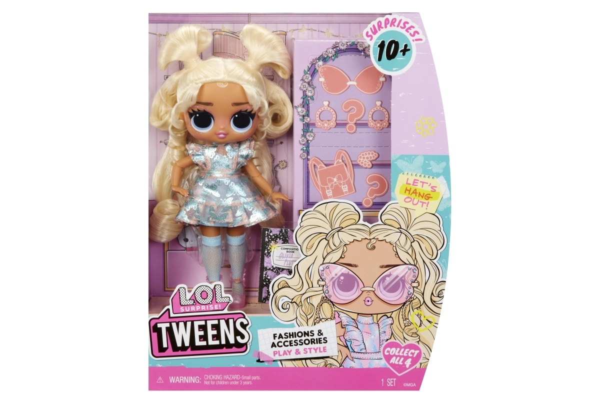 Esta adorable muñeca Tweens trae 10 sorpresas que estimulan la imaginación y el juego creativo: gafas de sol, joyas y un bolso o mochila con estilo. ¡Colecciona a todas sus amigas y crea tu propio desfile de moda!
