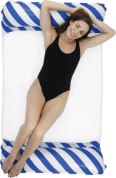 Nuestra hamaca acuática inflable es la solución perfecta para el descanso veraniego. Consta de dos cojines inflables independientes unidos por una malla de nailon elástica y transpirable, lo que garantiza una cómoda posición semitumbada. La inmersión parcial del cuerpo en el agua permite una refrigeración natural del organismo mientras tomas el sol.