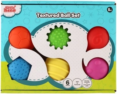 Cada una de las 6 pelotas tiene una superficie única que desarrolla el tacto y fomenta el descubrimiento curioso del mundo a través del contacto.