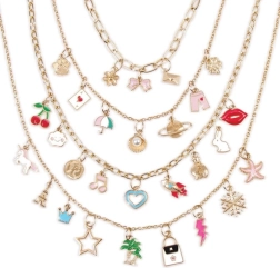 Con este set puedes crear collares totalmente únicos que resaltarán tu estilo. Elige la cadena y organiza los colgantes según tu imaginación. El set incluye todo lo necesario para que tu creación quede exactamente como deseas, incluyendo una práctica base para organizar los colgantes.