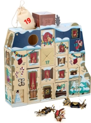 La casita calendario de adviento de madera de Vilac ofrece no solo una bella decoración navideña, sino también la opción de personalizarla. Con 24 compartimentos espaciosos, puedes colocar pequeños detalles, dulces, juguetes o mensajes cariñosos, lo que aporta alegría tanto a niños como a adultos.