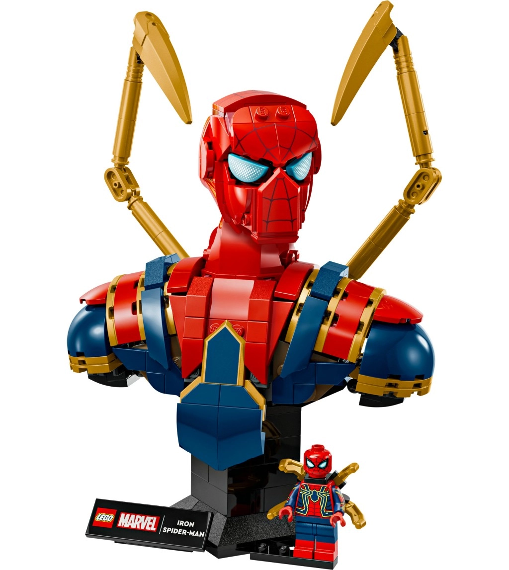 Adéntrate en el mundo de los superhéroes con el detallado busto de Iron Spider‑Man. Este set prémium para adultos combina el atractivo de la armadura roja, azul y dorada con detalles minuciosos, incluidos dos brazos mecánicos articulados y cabeza giratoria. También incluye una minifigura de Iron Spider‑Man y dos bases intercambiables con placa: una con espacio para la minifigura y otra sin él.