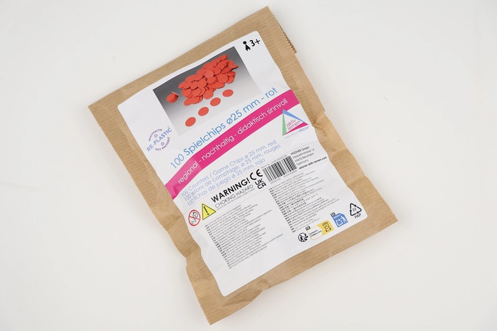 Disfruta de la diversión con las fichas rojas, que puedes utilizar para contar, puntuar o para la representación visual de diferentes tareas. Están hechas de plástico 100% reciclado, que tras su uso es nuevamente reciclable, lo cual es ideal para el desarrollo sostenible.