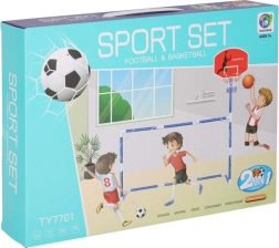 Set de juego universal que combina una portería de fútbol y un aro de baloncesto, aportando la alegría del juego y del movimiento al aire libre. Los pequeños deportistas pueden poner a prueba sus habilidades chutando a puerta y encestando.
