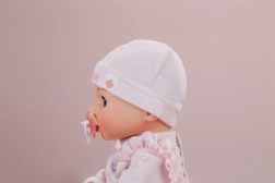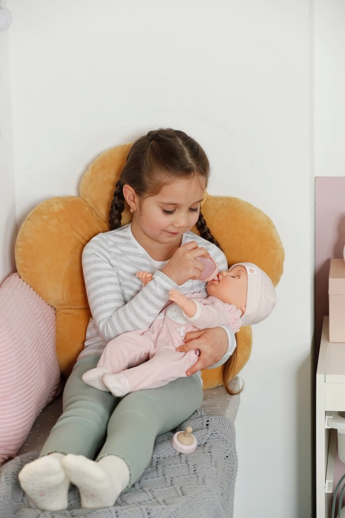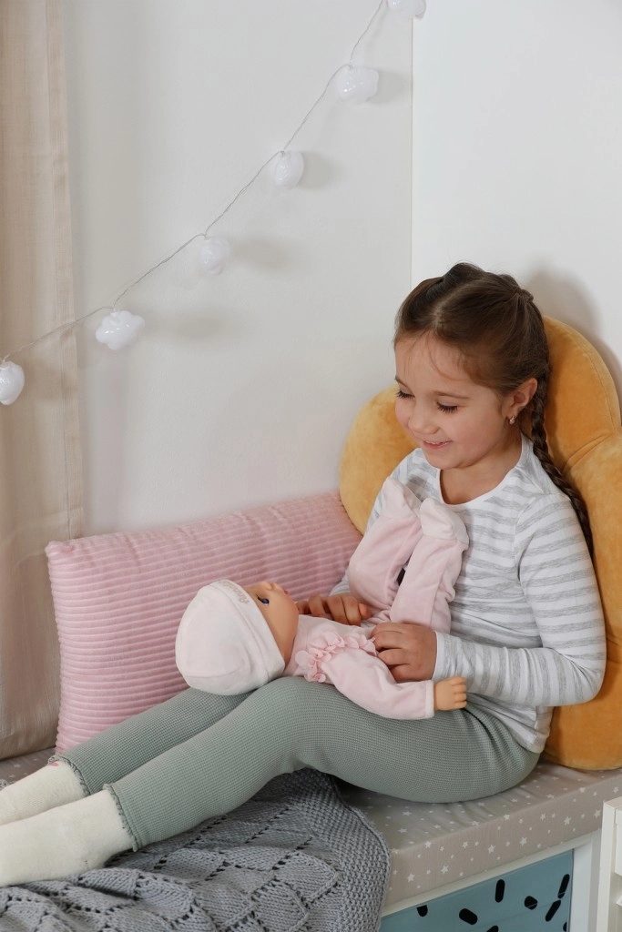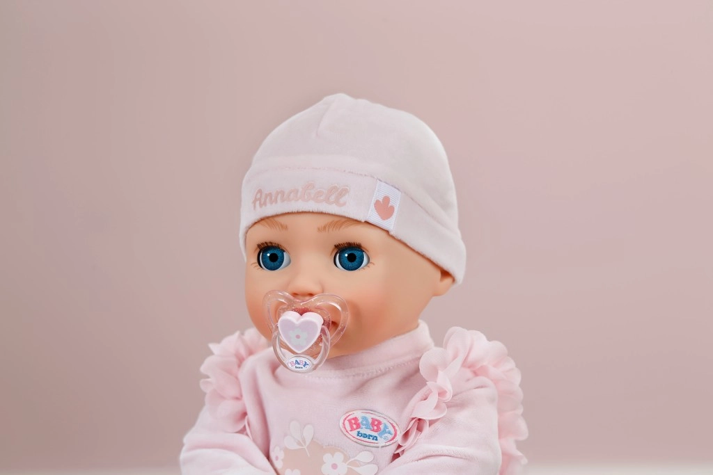 Conoce a la muñeca BABY born Annabell 43 cm – una compañera súper suave para jugar y acurrucarse a diario. Gracias a sus funciones electrónicas, mueve la boca de forma realista, abre y cierra los ojos, reacciona al chupete y al biberón, sabe arrullarse para dormir y sorprende con graciosos sonidos al hacerle cosquillas o durante su “gimnasia de bebé”.