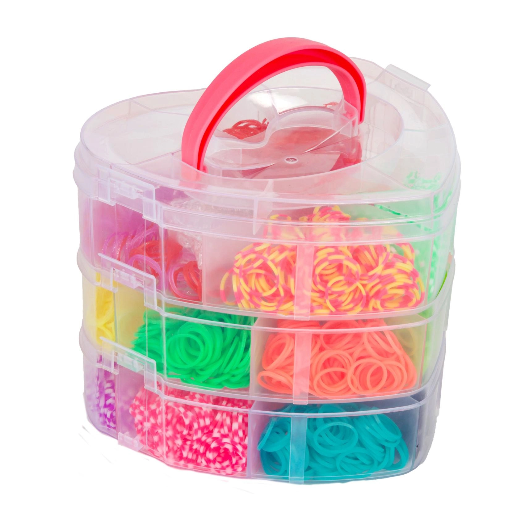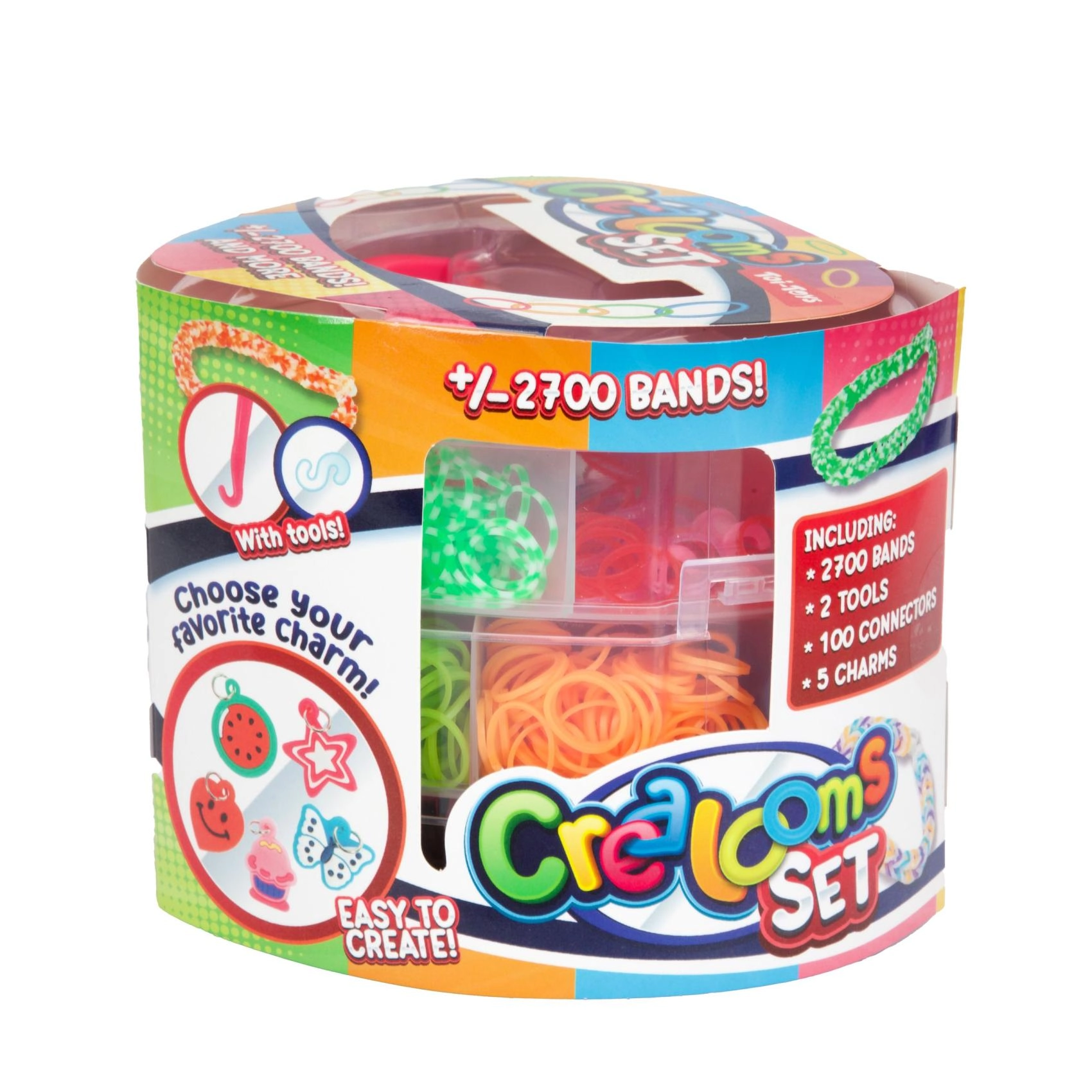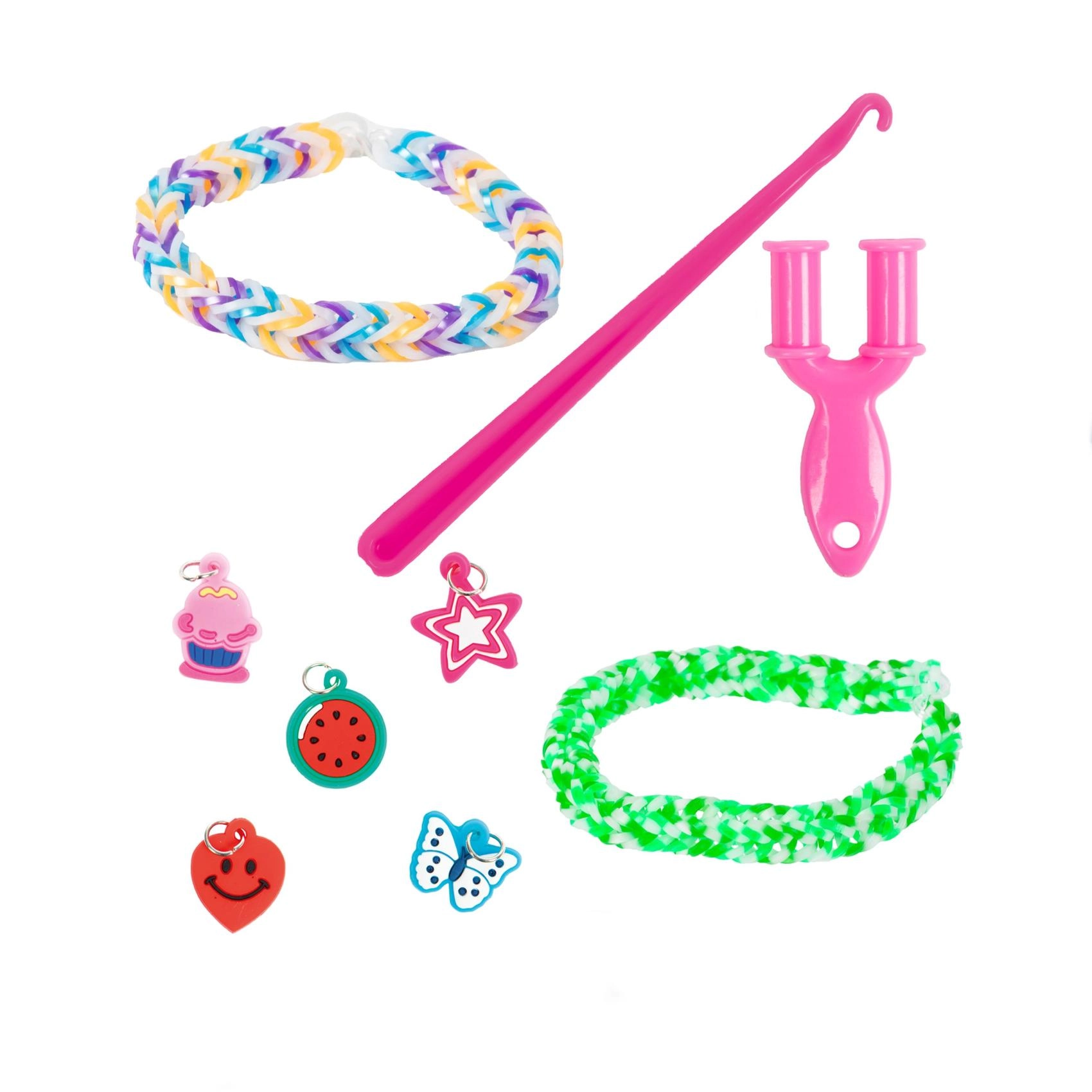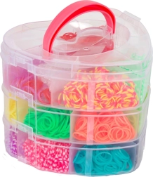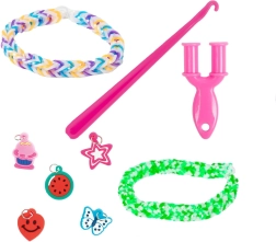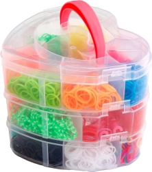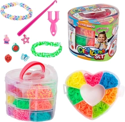 Set creativo para hacer tus propias pulseras y accesorios ideal para cualquier pequeño diseñador que quiera desarrollar sus habilidades. Incluye más de 2700 gomitas de colores y herramientas para tejer.
