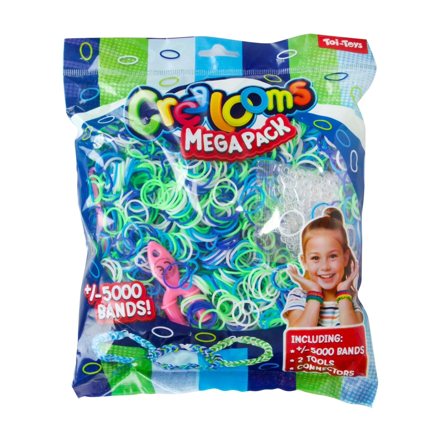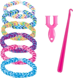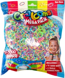 Crea tus propias joyas originales con este mega set que incluye hasta 5000 gomitas de colores, herramientas para tejer y conectores. Ideal para desarrollar la creatividad infantil y la motricidad fina.