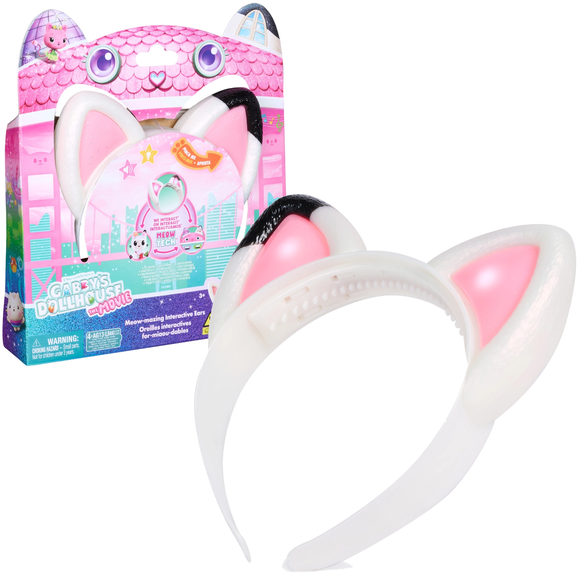 Al presionar la oreja se activan efectos de sonido: risa de Gabby, maullidos y una melodía juguetona que estimulan la imaginación y creatividad infantil. La diadema es un complemento estupendo para otros juguetes del mundo de GABBY’S DOLLHOUSE y es ideal para fiestas, carnavales y el juego diario.