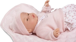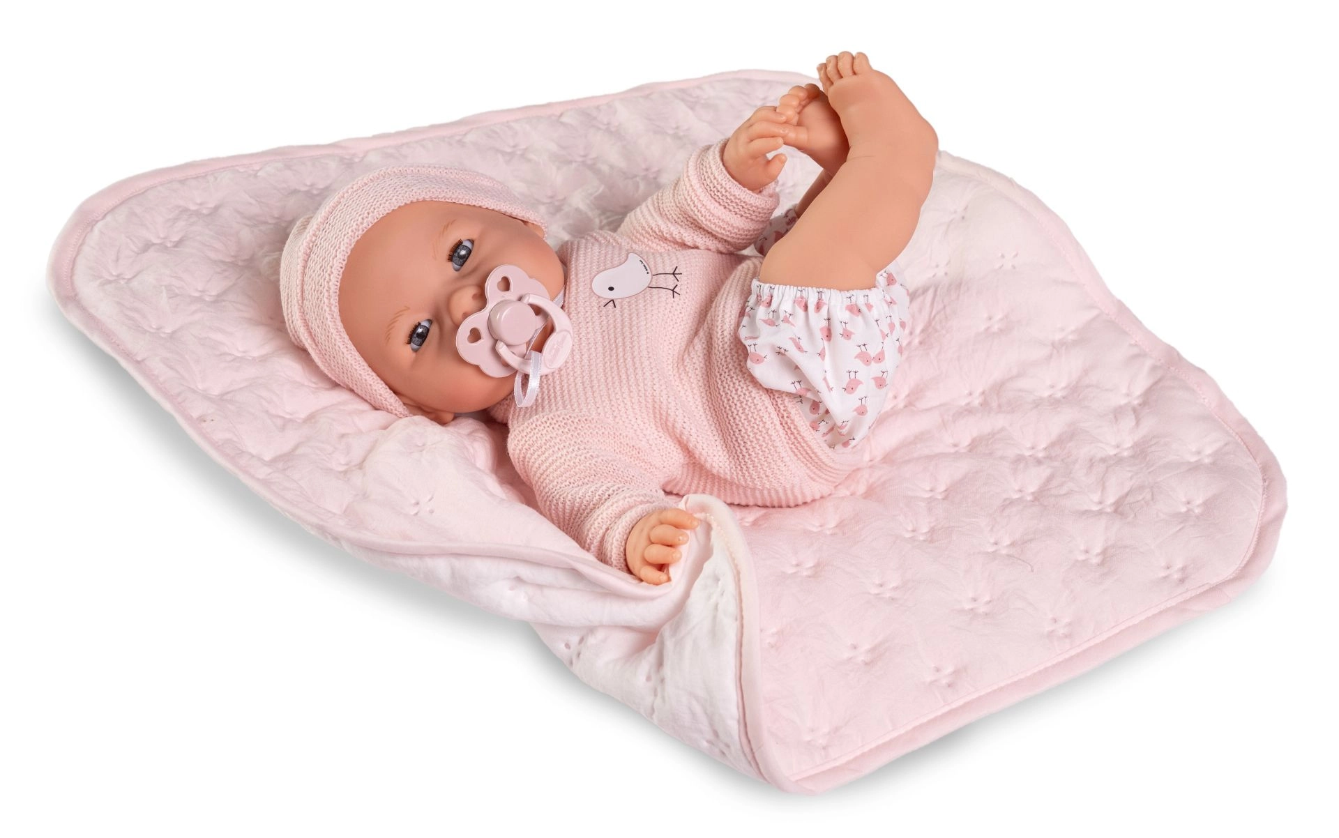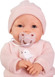 Descubre la magia del juego con una muñeca que parpadea y llora como un bebé real. La muñeca reacciona al chupete magnético; al retirarlo, empieza a decir "mamá", "papá" y a emitir un sonido real de llanto. El sonido se calma al volver a colocar el chupete.