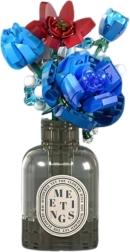 Este set de construcción ofrece una combinación de elegancia colorida y diversión creativa. El modelo en tonos fríos de azul y rojo llama la atención por su acabado preciso, el contraste de colores y su forma estética. Las flores de esta composición incluyen rosas azules, tulipanes rojos y pequeños detalles que imitan panículas o bayas.
