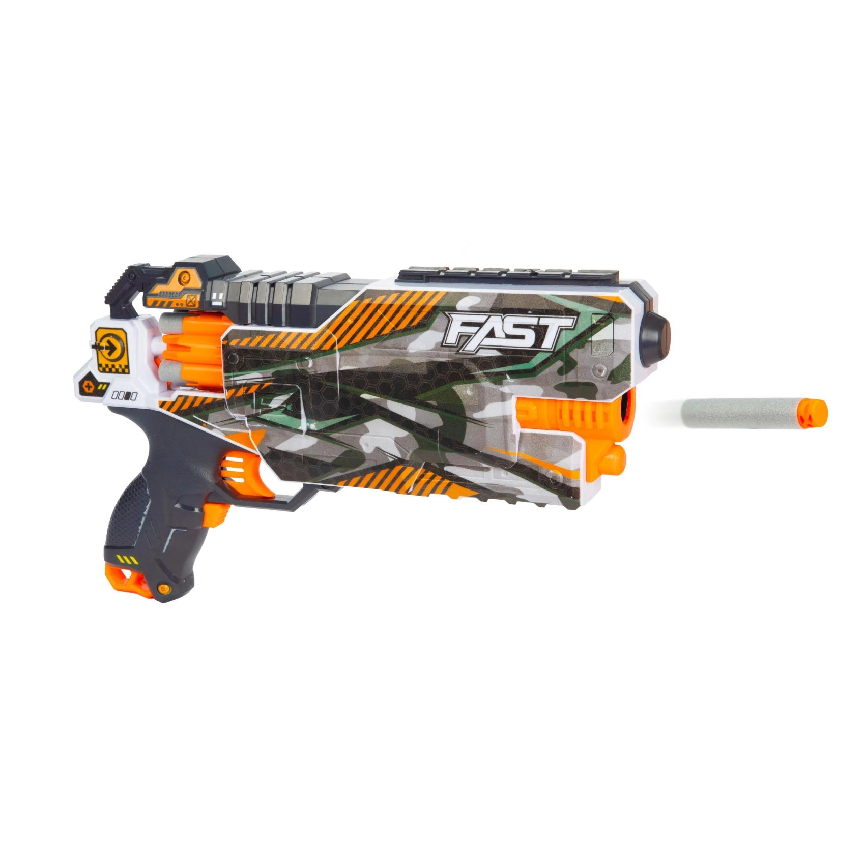 Prepárate para una aventura de acción con esta pistola de dardos de espuma. Con un diseño de camuflaje elegante y carga automática, los duelos en casa y al aire libre serán garantía de diversión. Un alcance de hasta 15 metros pondrá a prueba tus habilidades de combate. Ideal para niños a partir de 3 años.