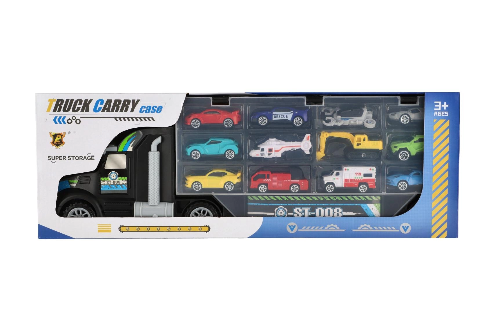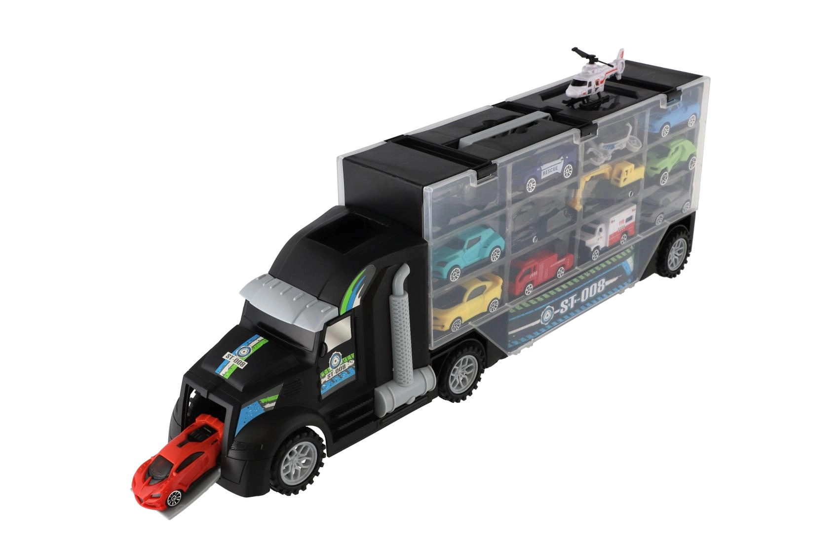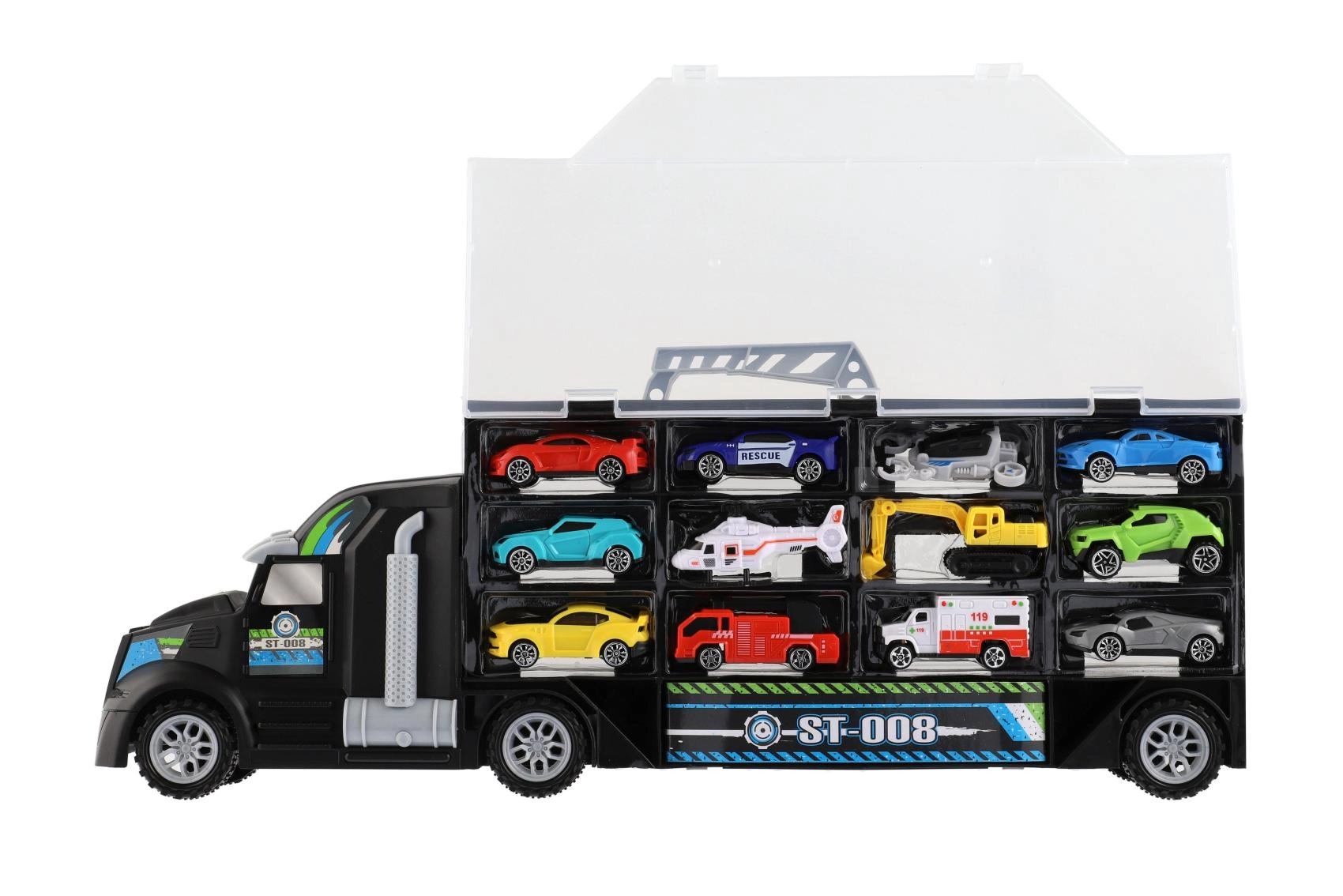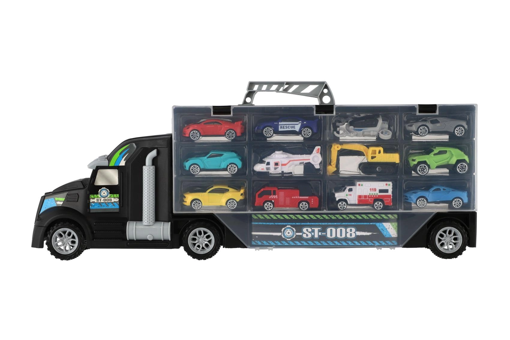 El gran camión transportador con movimiento libre es un regalo ideal para los pequeños aficionados a los coches. Este camión multifuncional sirve como caja de almacenamiento y set de juego, lo que permite un fácil transporte y exposición de los vehículos.