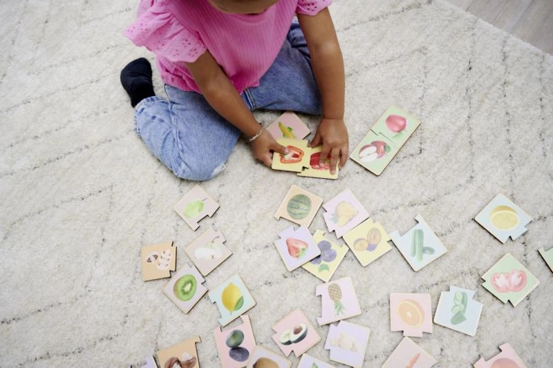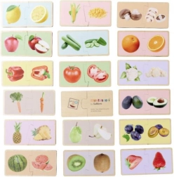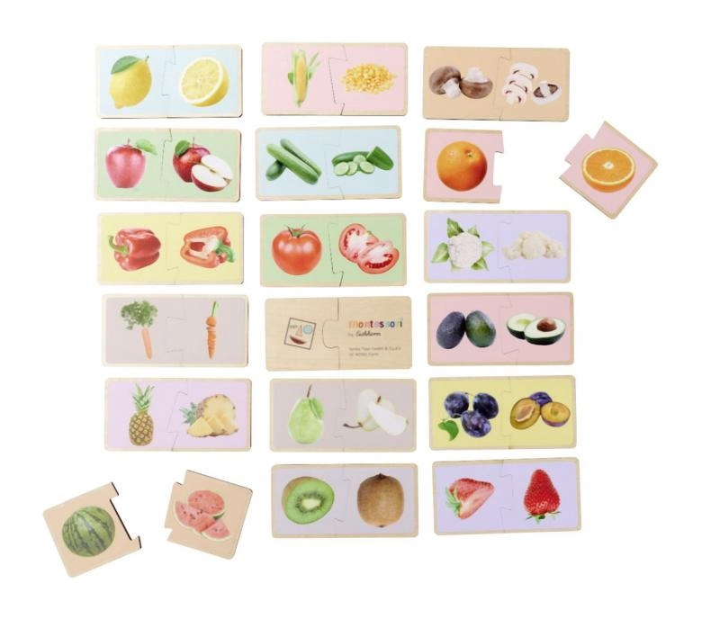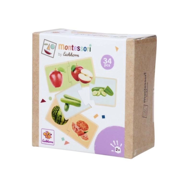 Descubra una forma divertida de enseñar a los niños a reconocer frutas y verduras. Estos puzzles Montessori de madera constan de 36 piezas con imágenes realistas, y desarrollan la motricidad fina, el pensamiento lógico y el vocabulario. Fabricado con 100% madera de tilo con certificación FSC, adecuado a partir de 2 años.