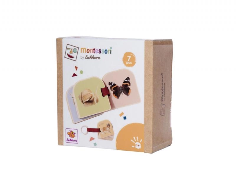 Este libro de madera Montessori estimula la curiosidad natural y el desarrollo de los sentidos. En 6 resistentes páginas de madera encontrarás por ambos lados ilustraciones de animales que atraen a los niños por sus colores y sencillez. Gracias a las esquinas redondeadas y a la agradable textura de la madera, el libro se sujeta muy bien incluso en manos pequeñas.