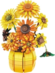 Este set de diseño permite construir una composición tridimensional de girasoles colocados en un jarrón elegante. Cada pieza reproduce fielmente la forma y la textura de la planta, de modo que el modelo final resulta realista y decorativo. La paleta armoniosa de tonos amarillos, naranjas, verdes y marrones encaja de forma natural en interiores modernos, salones y despachos.