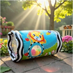 Gracias a los patrones de alto contraste, las ventanitas para mirar y las adorables ilustraciones de animalitos, el juguete resulta visualmente estimulante y a la vez seguro para las manitas pequeñas. Es fácil de inflar, se transporta sin esfuerzo y es perfecto para jugar en casa, de visita o durante los viajes.