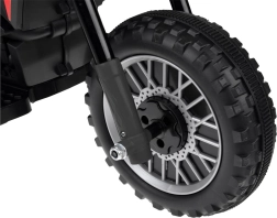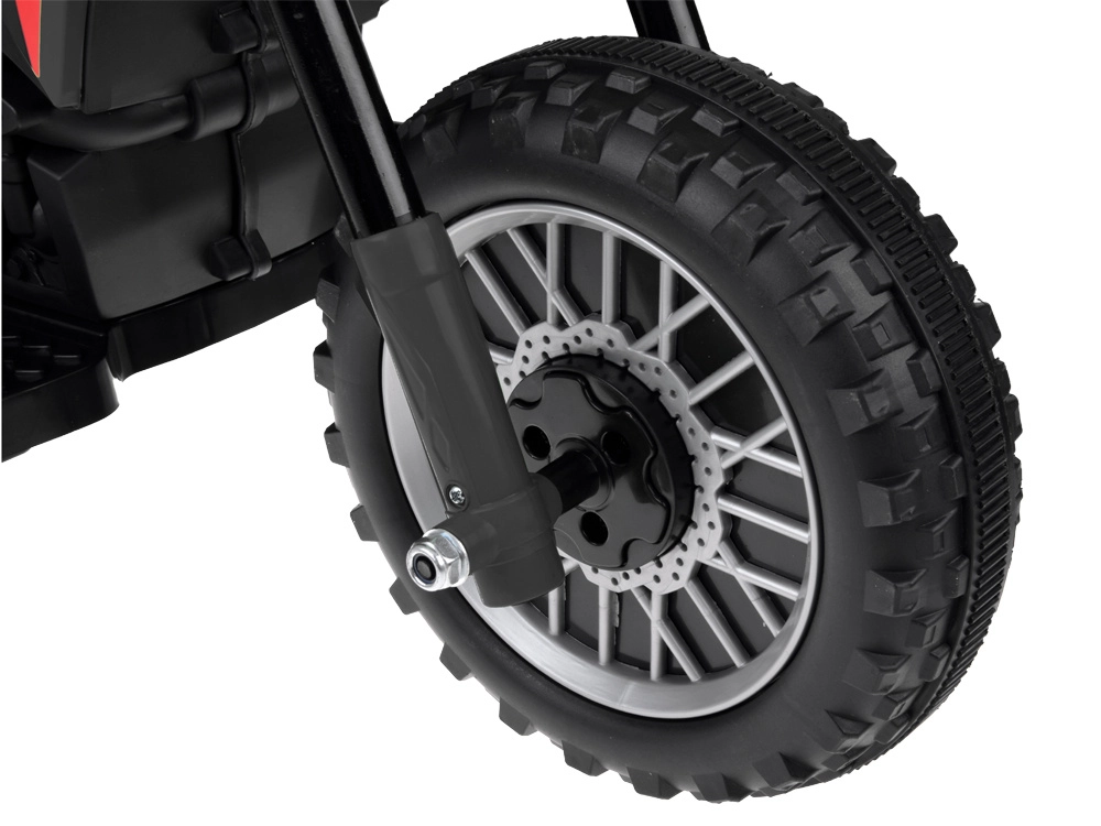 Las ruedas robustas con bandas amortiguadoras reducen el ruido y las vibraciones en superficies duras o irregulares. El freno eléctrico se activa automáticamente al soltar el pedal del acelerador, ideal para conductores principiantes. Subir y bajar con facilidad fomenta la autonomía del niño y facilita paseos cortos y largos.