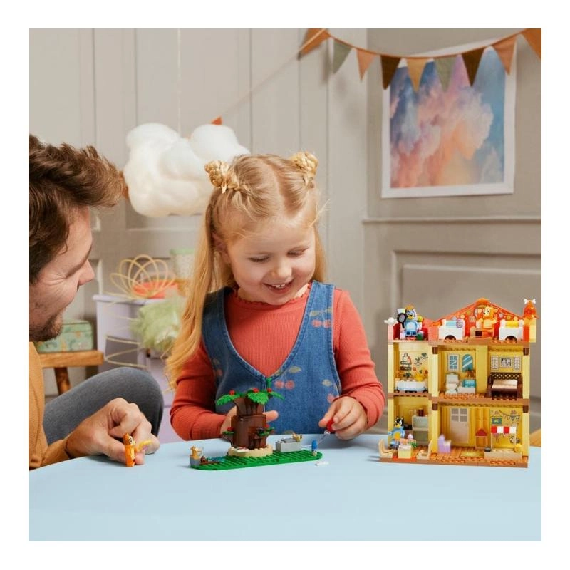 Esta colorida casa familiar trae a los personajes favoritos Bluey, Bingo, mamá Chili y papá Bandit, junto con un amplio equipamiento para aventuras cotidianas y alocadas. Cada habitación se puede desmontar y reconfigurar, para que los niños recreen fácilmente escenas de la serie y creen nuevas historias.