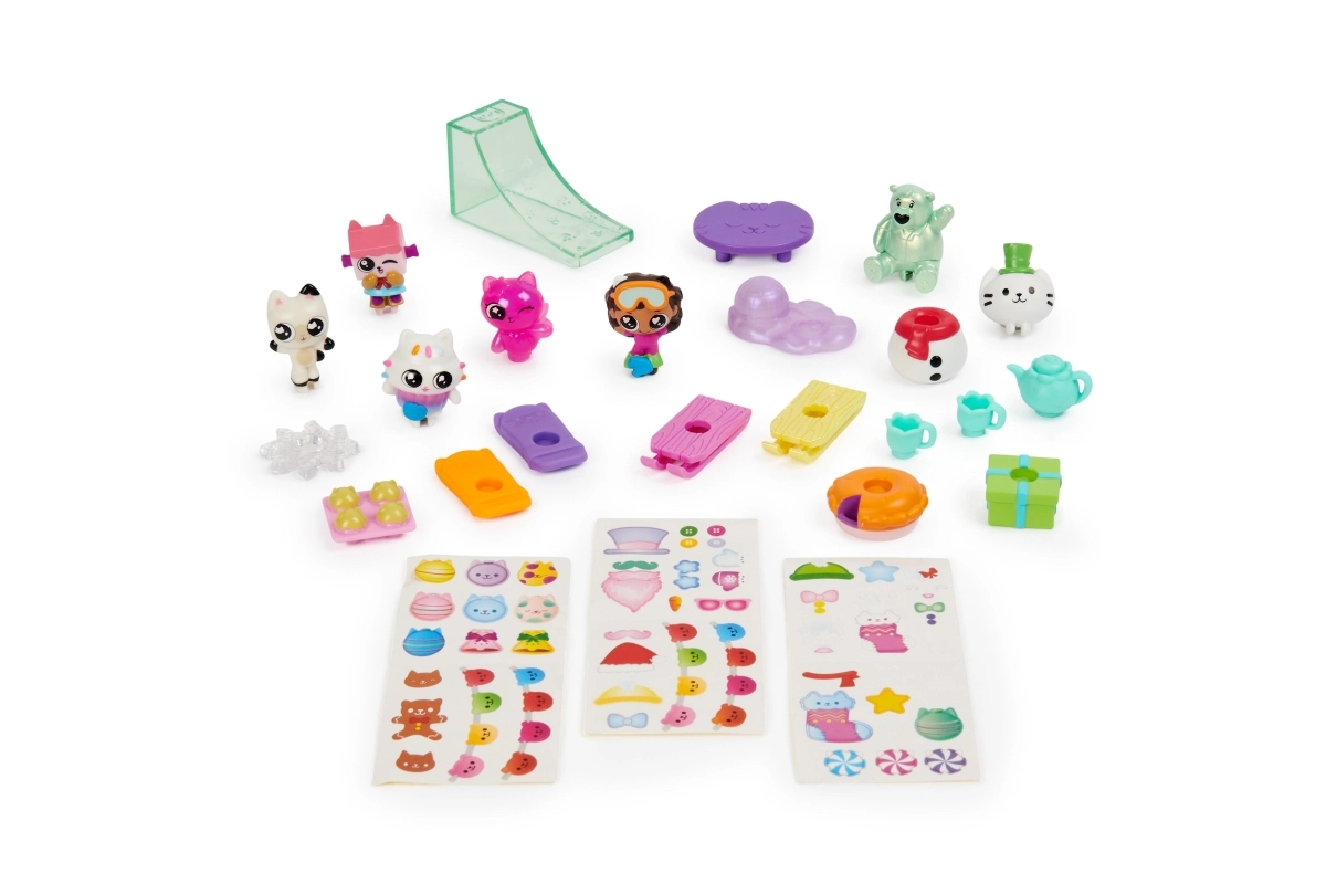 Una mezcla de mini figuras, accesorios, muebles y pegatinas que potencia la imaginación y la construcción de escenas invernales del mundo de Gabby’s Dollhouse.