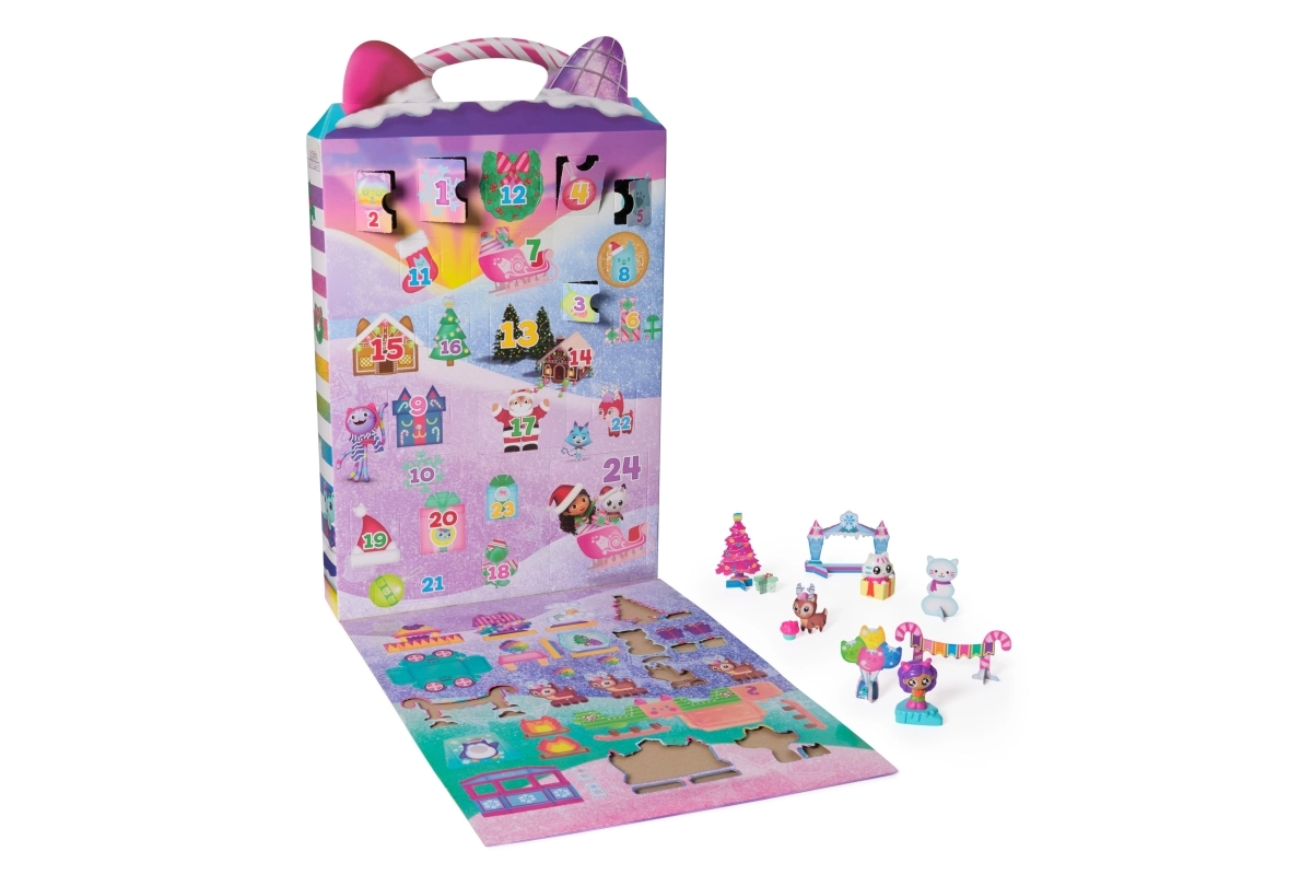 Haz que el Adviento sea realmente especial. Este colorido calendario con forma de casita esconde 24 ventanitas con figuras, accesorios y mini escenas para historias infinitas de Gabby’s Dollhouse. Incluye una figura exclusiva de película de Gabby, su pandilla gatuna y adorables accesorios para el juego invernal.