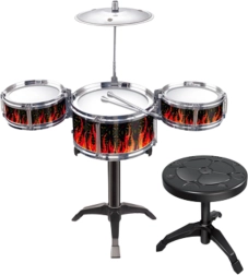 El set destaca por sus interesantes efectos de sonido y su atractivo diseño de llamas en combinación de colores negro y rojo. Los niños pueden crear sus propios ritmos y desarrollar la motricidad, la concentración y la autoconfianza al actuar frente a la familia. Una excelente elección para sus primeros pasos musicales.