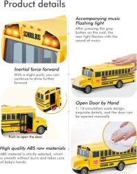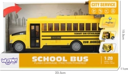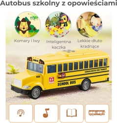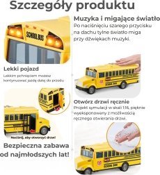 El autobús escolar interactivo WOOPIE a escala 1:20 encantará a los pequeños aficionados a los vehículos y al transporte urbano. Los detalles realistas, las luces frontales y los sonidos de conducción sumergen a los niños en el juego, mientras que las puertas abatibles fomentan escenas creativas y el juego de roles. Gracias a la propulsión por inercia (fricción), basta con empujarlo y recorrerá varios metros por sí solo.