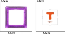 - 8 cuadrados azules, 7 cuadrados rojos, 9 cuadrados grises, 7 cuadrados morados, 9 cuadrados verdes, 30 tarjetas educativas con letras