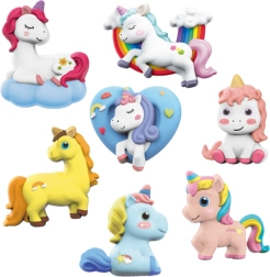 Con este set, los niños pueden moldear fácilmente sus propios unicornios, dejarlos secar y luego pintarlos como prefieran. Las diferentes formas y posturas de las figuras permiten crear una colección única que decorará la habitación infantil. El completo conjunto de accesorios garantiza que puedan hacerlo en casa de forma cómoda y segura.