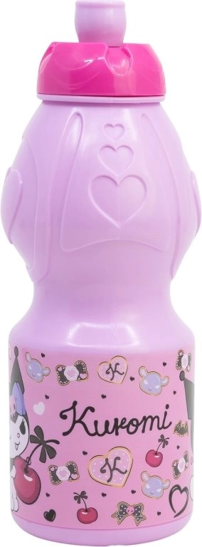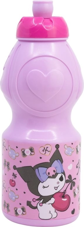Elegante botella infantil para beber con el motivo de KUROMI y una capacidad de 400 ml, ideal para la escuela, excursiones y deporte. Ofrece forma ergonómica, tapón de seguridad antigoteo y agarre antideslizante. No contiene BPA ni ftalatos y es fácil de limpiar.