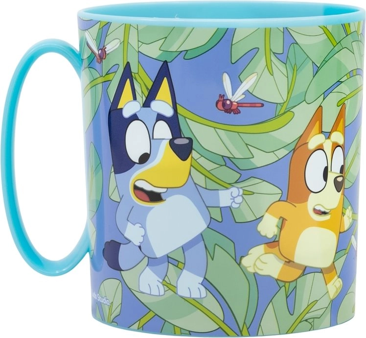 La taza infantil de plástico con los personajes favoritos de BLUEY encantará a cualquier pequeño fan. Su práctico volumen de 390 ml es adecuado para bebidas calientes y frías, y su construcción resistente soporta el uso diario. La taza es apta para microondas, por lo que podrás calentar bebidas y desayunos fácilmente.