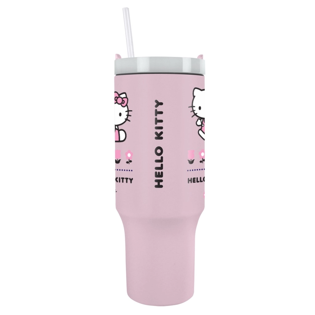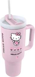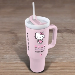 Elegante vaso de viaje con motivo de Hello Kitty para beber cómodamente tanto en movimiento como en casa. Gracias al acero inoxidable, mantiene las bebidas calientes y frías durante mucho tiempo; cuenta con un diseño ergonómico, una práctica tapa con pajita y un asa cómoda para un uso sencillo. Ideal para el coche, el trabajo y las excursiones. Capacidad de 1200 ml.