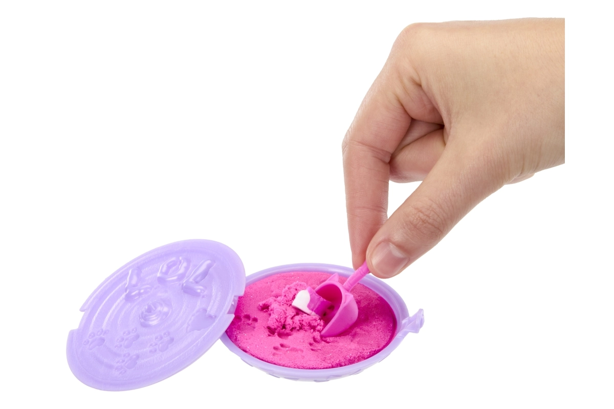 Abre el compartimento de arena y, con la palita, desentierra mini accesorios. Diversión sensorial que fomenta el juego creativo y la pasión por coleccionar.