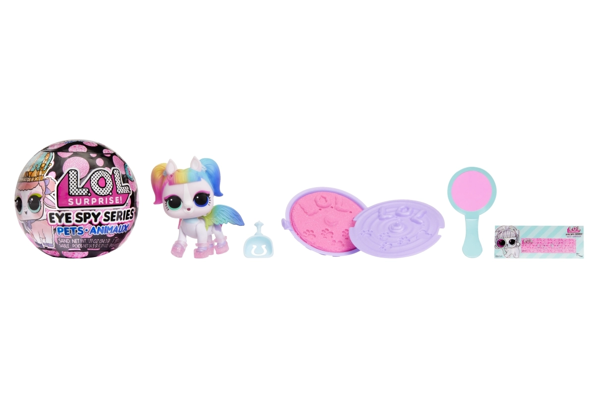 L.O.L. Surprise! Eye Spy Pets ofrece una revelación emocionante paso a paso: desenvuelve capas, descifra mensajes secretos con el descifrador y descubre accesorios ocultos en la arena. Cada mascota tiene su propio estilo y funciones sorprendentes que encantarán tanto a coleccionistas como a peques amantes del juego creativo.