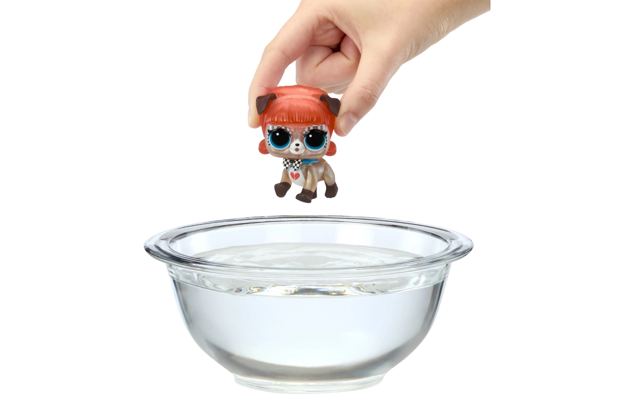 El gran atractivo es la ultra rara bola dorada con el especial cachorrito espía Spy Puppy. Esta mascotita ofrece un extravagante cambio de color: en agua fría aparecen acentos de color y, gracias al cambio de color “con memoria”, el patrón se mantiene hasta que lo sumerjas de nuevo en agua caliente. Ideal para juego sensorial, de colección e imaginativo.