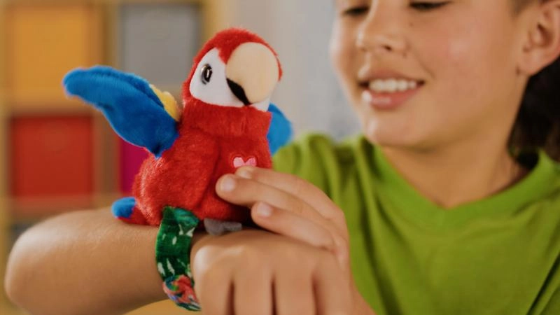 Descubre el divertido loro STEPPOS Happy Yappers, que cobra vida directamente en tu muñeca. Gracias a su fácil sistema de sujeción, se convierte en tu compañero de juegos en casa y de viaje. Las funciones interactivas como repetición de voz, canto y aleteo sacarán una sonrisa a cualquier niño.