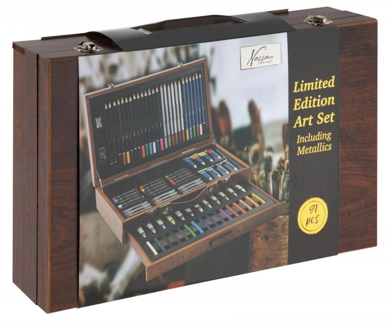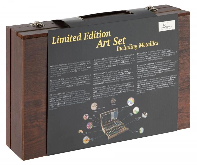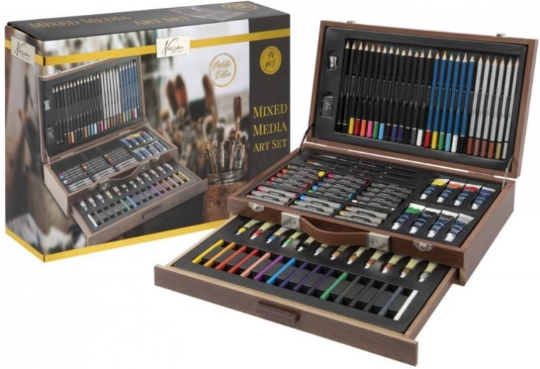 El contenido del set está diseñado para cubrir todo el espectro de necesidades artísticas: desde el dibujo hasta acrílico y acuarela. Podrá probar fácilmente técnicas secas y húmedas, combinar capas y mezclar tonos. Gracias a su práctico embalaje, el set es adecuado para el hogar, la escuela y los viajes.