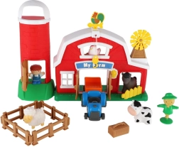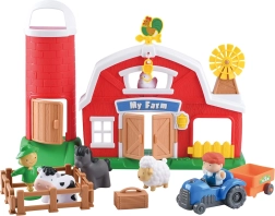 Descubre la alegría del campo con esta colorida granja para los más pequeños. Un gran granero con silo, tractor, animalitos y granjero invitan a un juego de roles sin fin, mientras que, al encenderla, suenan sonidos realistas que dan vida al juego. Gracias a su resistente estructura de plástico y bordes redondeados, el set es seguro y adecuado desde los 18 meses, y desarrolla la imaginación y la motricidad fina.
