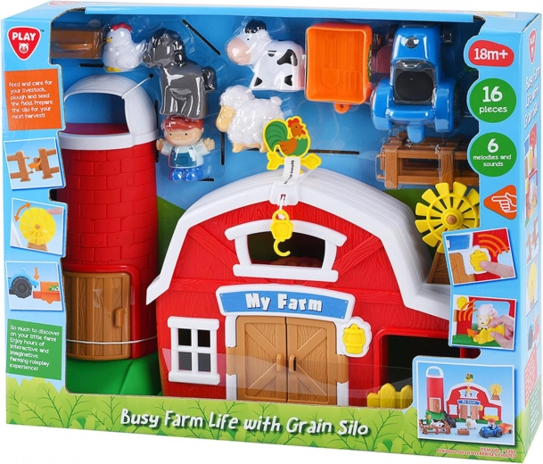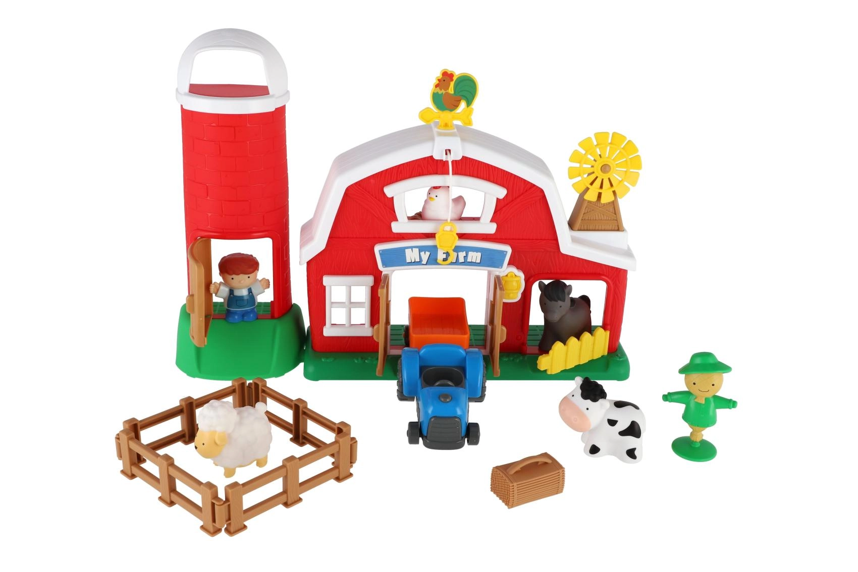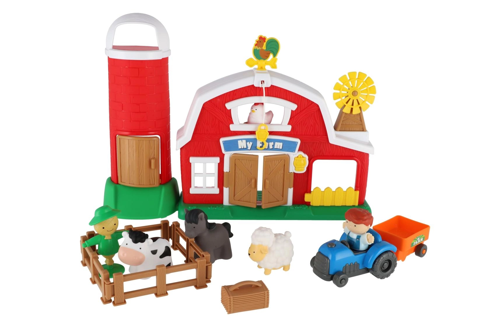 El granero con silo, el tractor, el granjero, los animalitos y los cercados ofrecen horas de juego creativo y narración de historias.